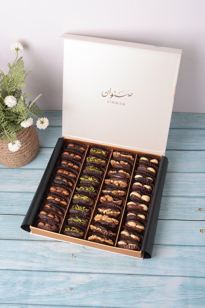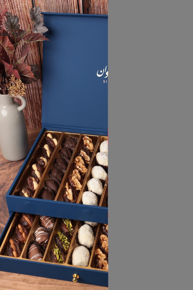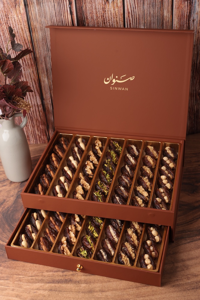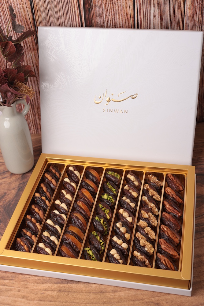 Sinwan’s hallmark collection — exquisite gift boxes filled with premium dates, carefully stuffed with gourmet fillings such as pistachios, walnuts, almonds, figs, and more.